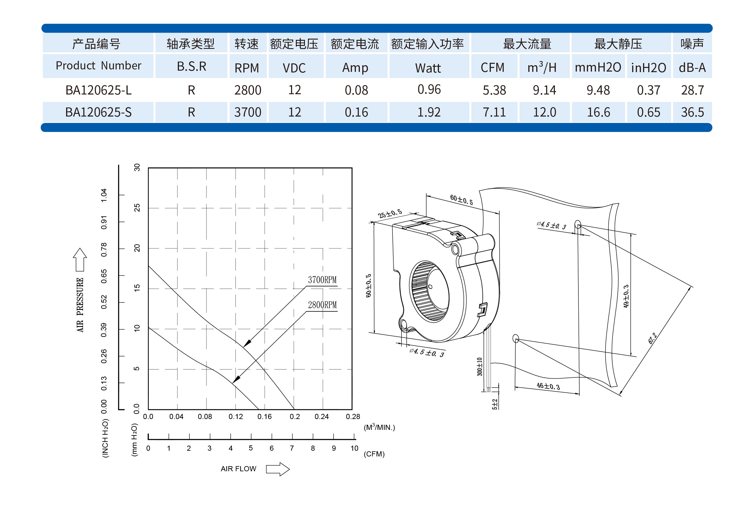 材质:扇叶和扇框为塑胶材质(防火等级ul94v-0)